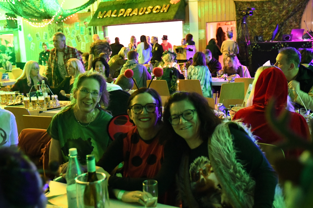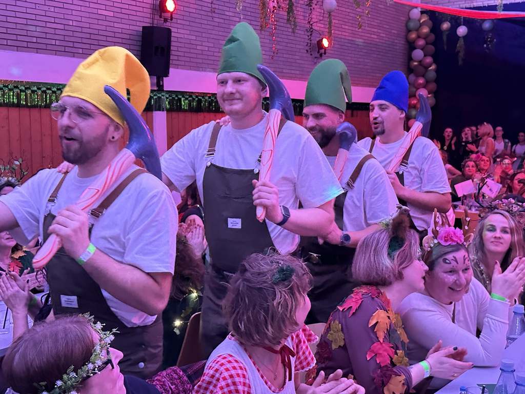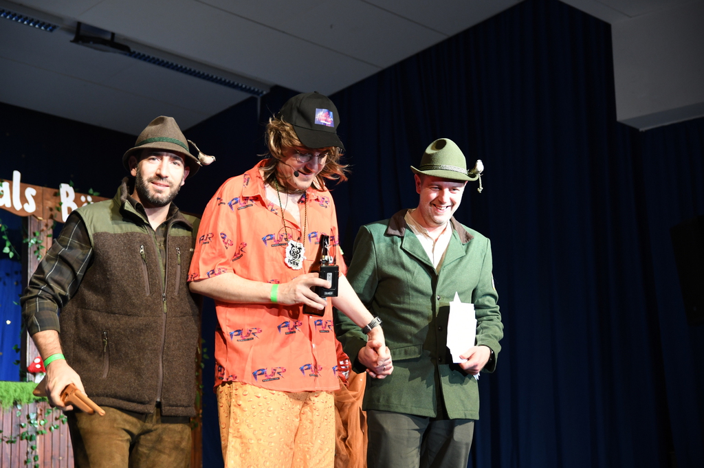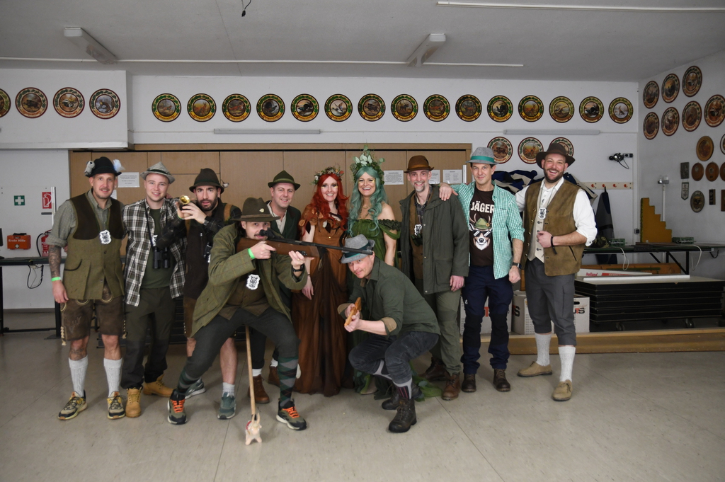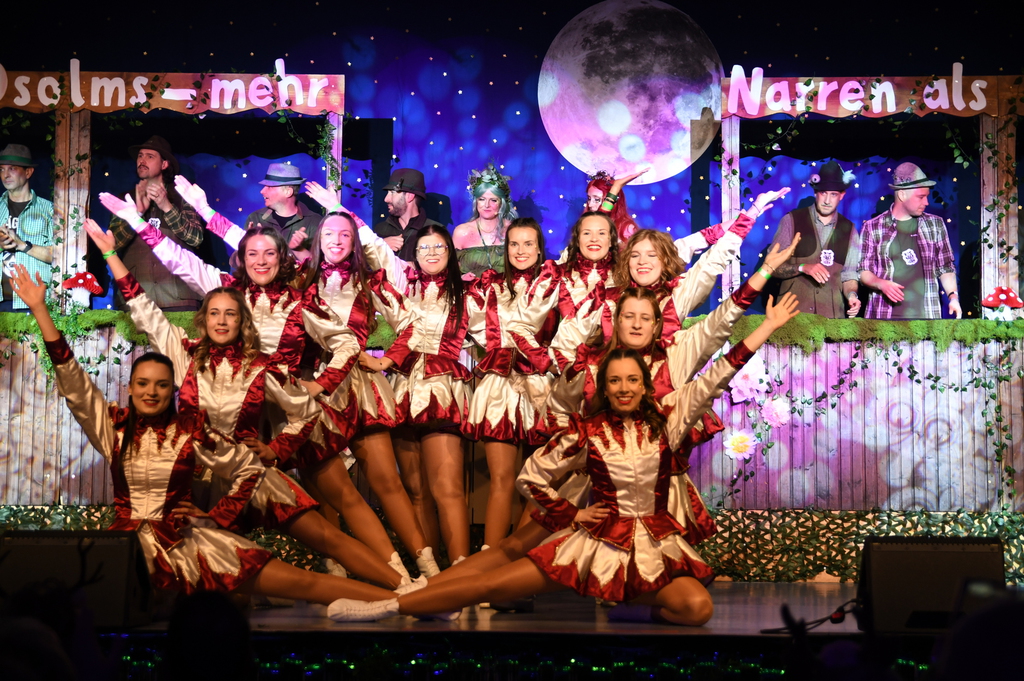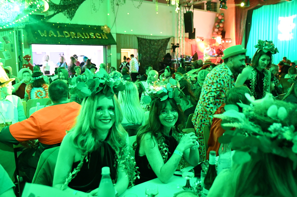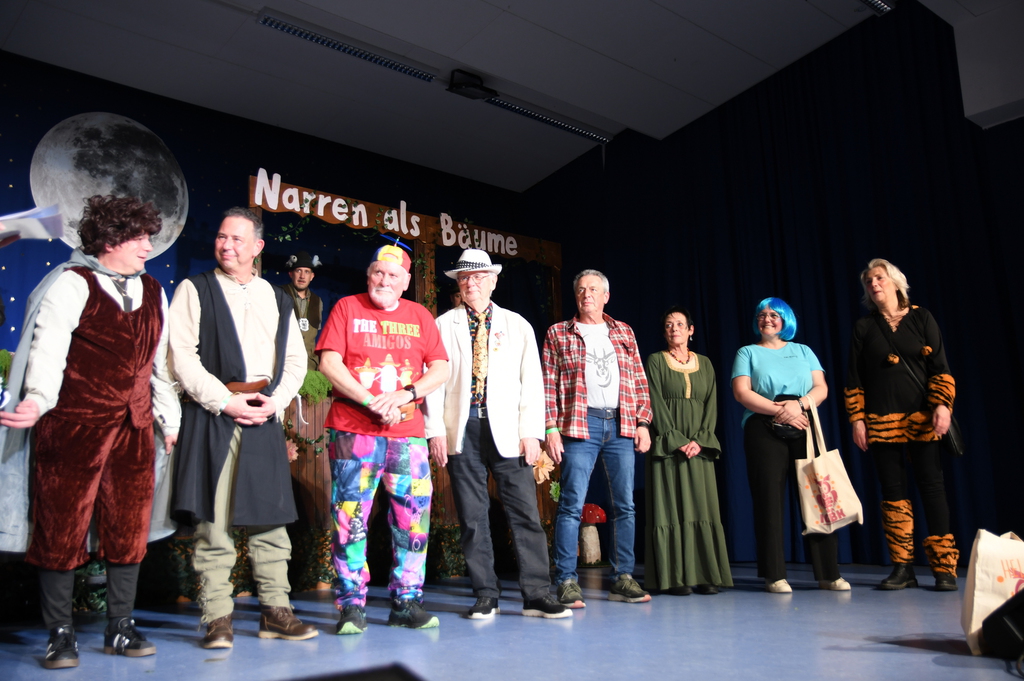 Eröffnet wurde die Prunksitzung durch die Jagdhornbläser Matias und Silvan, die immer wieder auch neue Programmpunkte ankündigten. Die Show startete mit einer wilden Verfolgungsjagd, bei der der Elferrat seine TreffUNsicherheit unter Beweis stellte, ehe sich der Vorhang öffnete und die Sitzungspräsidentinnen Christine und Christin putzmunter als Waldfeen auf der Bühne erschienen.