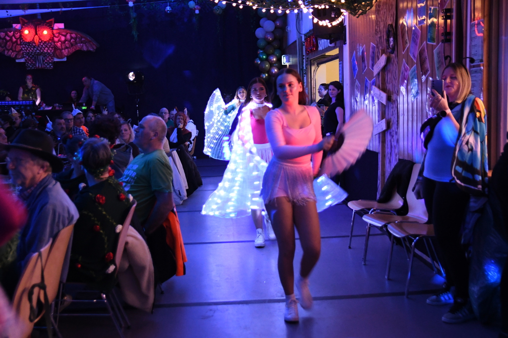 Für große Lacher sorgte anschließend Hanna mit ihrer Büttenrede rund um ihren Opa im Ruhestand. Mit viel Charme und Witz brachte sie die Narhalla zum Schmunzeln. Magisch wurde es beim Tanz der Konfettis, die als kleine Hexen zu Bibi Blocksberg auf ihren Besen über die Bühne fegten und das Publikum verzauberten.