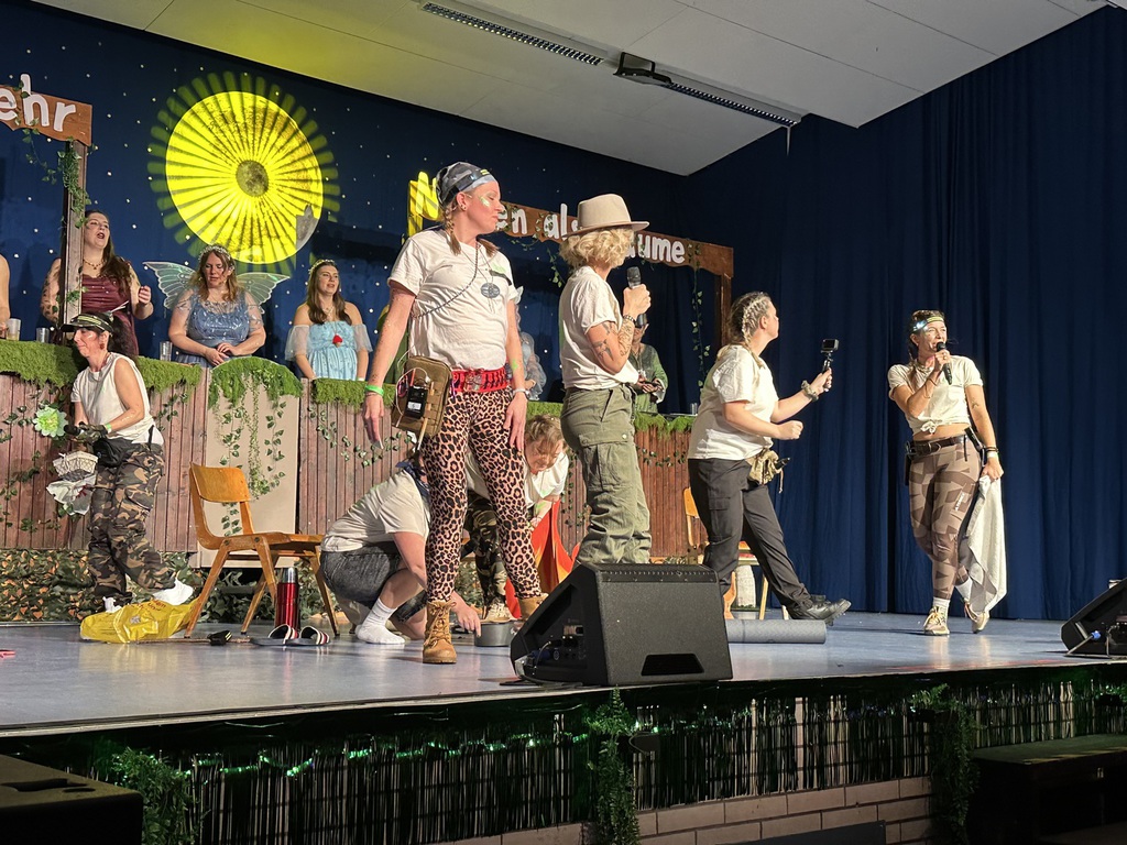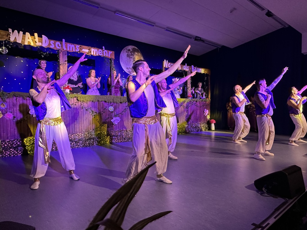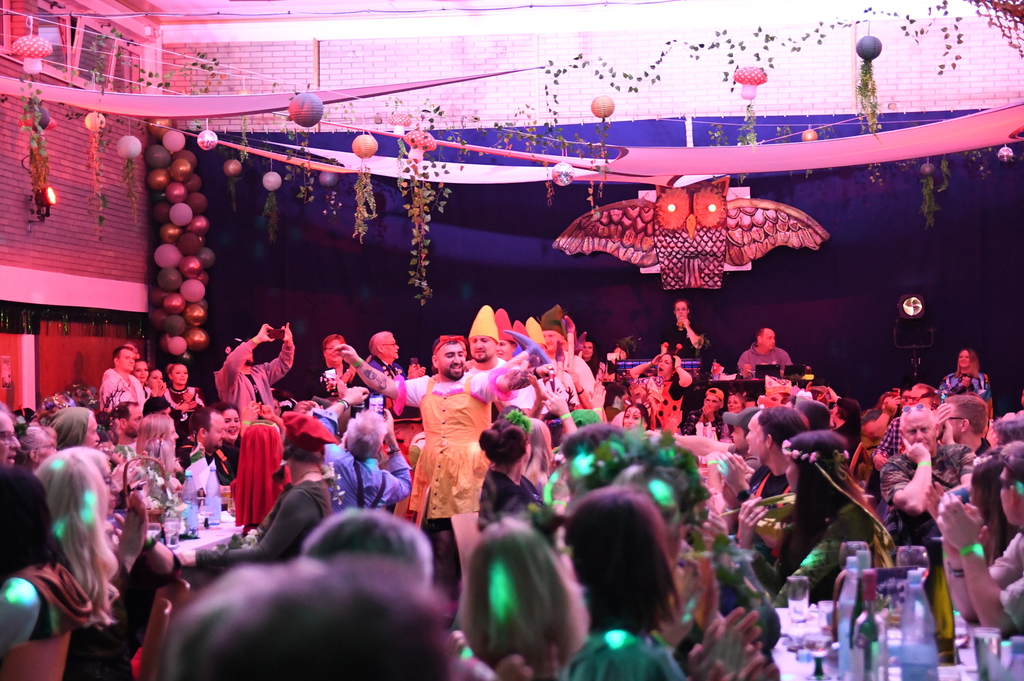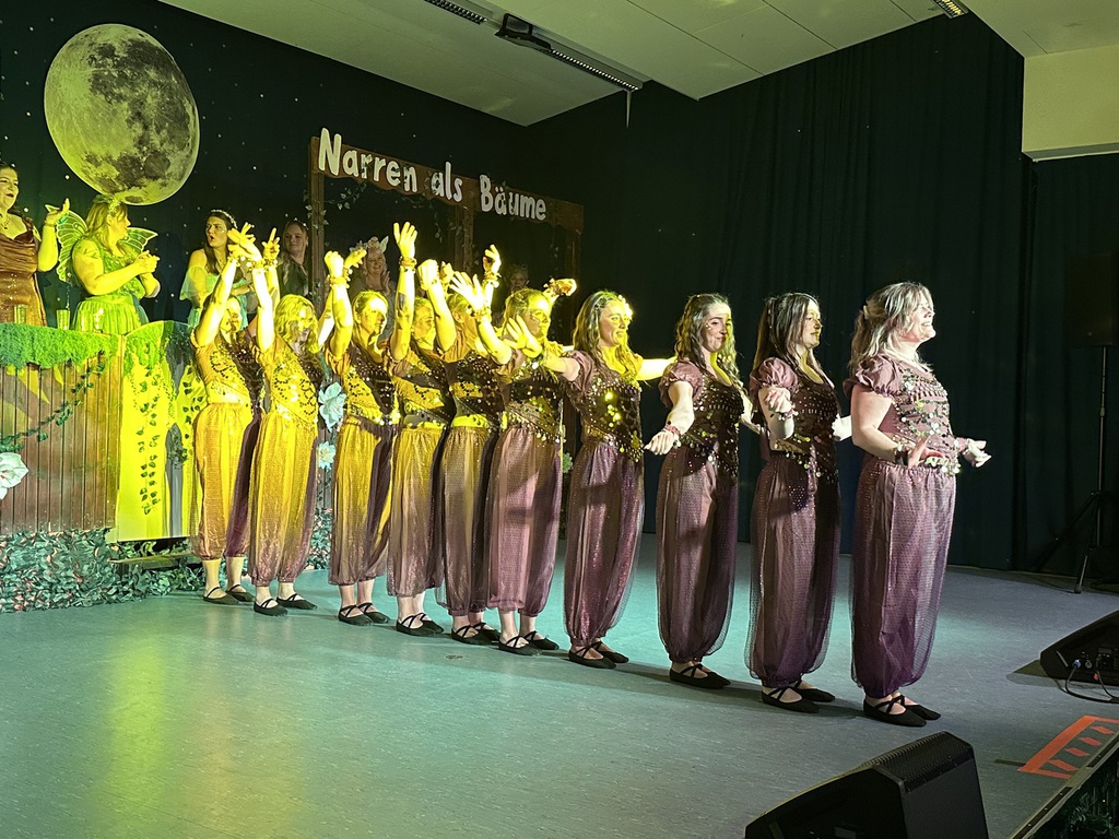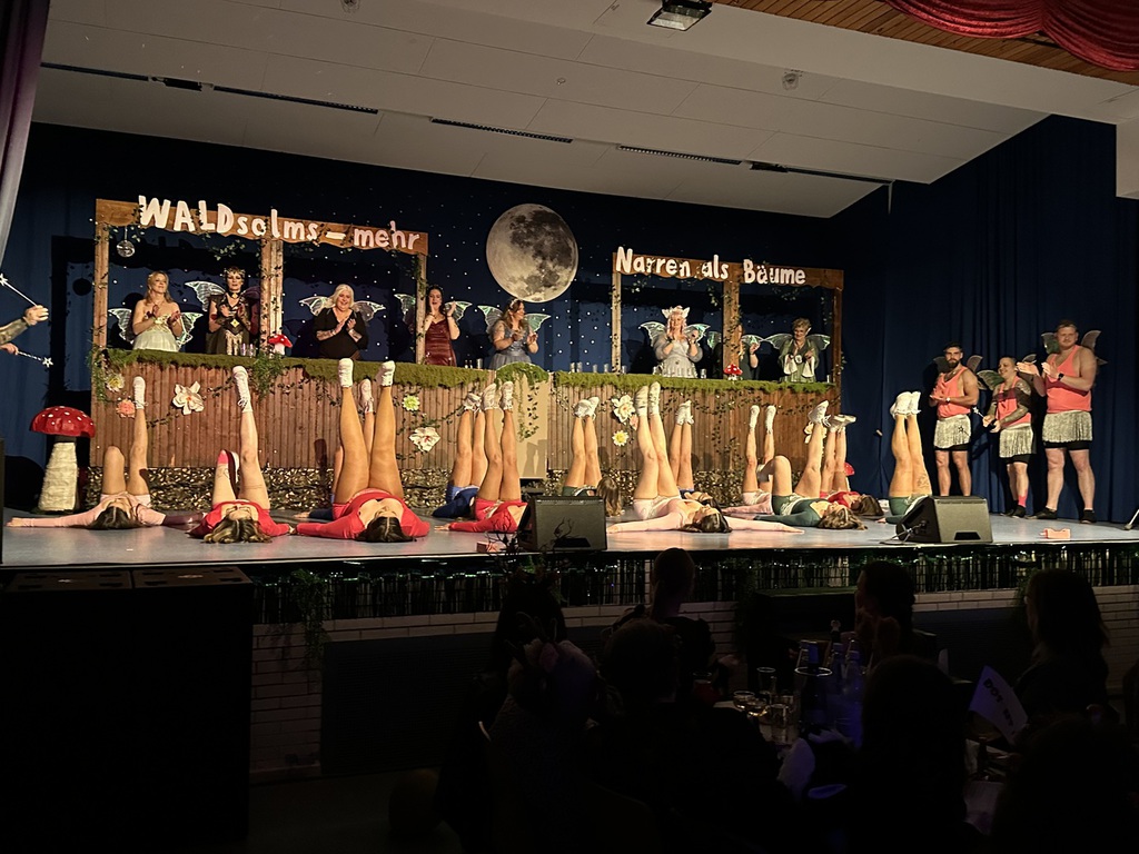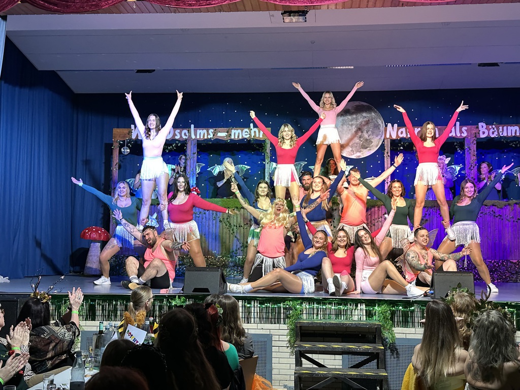 Benny als „Kall ne Vall“ forderte das Publikum nochmal zum Lachen auf, ehe die X-Pressions als Waldfeen durch die Halle auf die Bühne einzogen und mit einem energiegeladenen Tanz überzeugten.