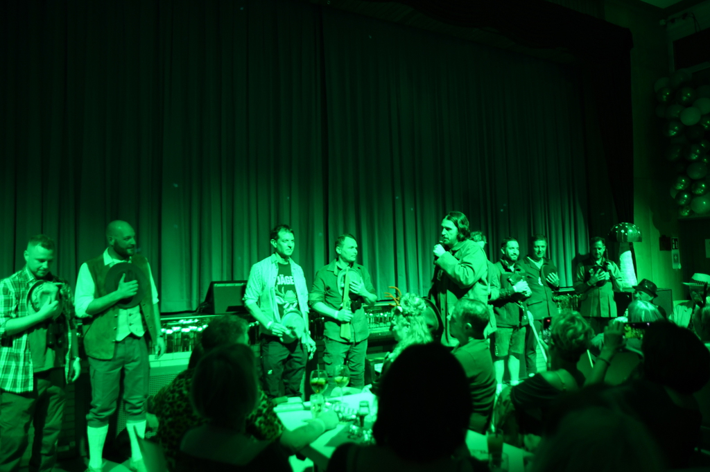 Zum Abschluss kamen noch einmal alle Aktiven auf die Bühne. Gemeinsam sangen sie das bekannte Brandylied von unseren Fidibussen und feierten bis in die frühen Morgenstunden. Die Livemusik von Ben & Roy nach der Sitzung sorgte für mächtig Stimmung.